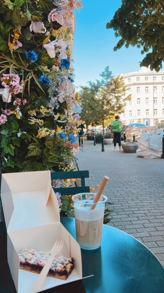 It’s now my fourth week in Warsaw and my third week at my summer internship. I had quickly discovered the ideal route connecting my city-center apartment to my workplace. The route balanced time for a healthy morning walk on Wilcza and Poznańska with a punctual arrival at the bus stop on Koszykowa by around 9a.m. Along the way, small cafés, bars, and bakeries protruded from the stone apartment bases, and others sunk into the stone with staircase entryways and intricate iron gates. While each of these caught my eye during the first week along my route, all but the Sweet & Blossom Café had faded into familiarity by this particular Monday morning in the middle of June.